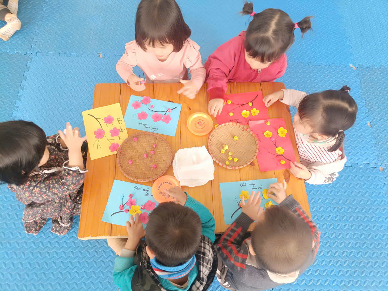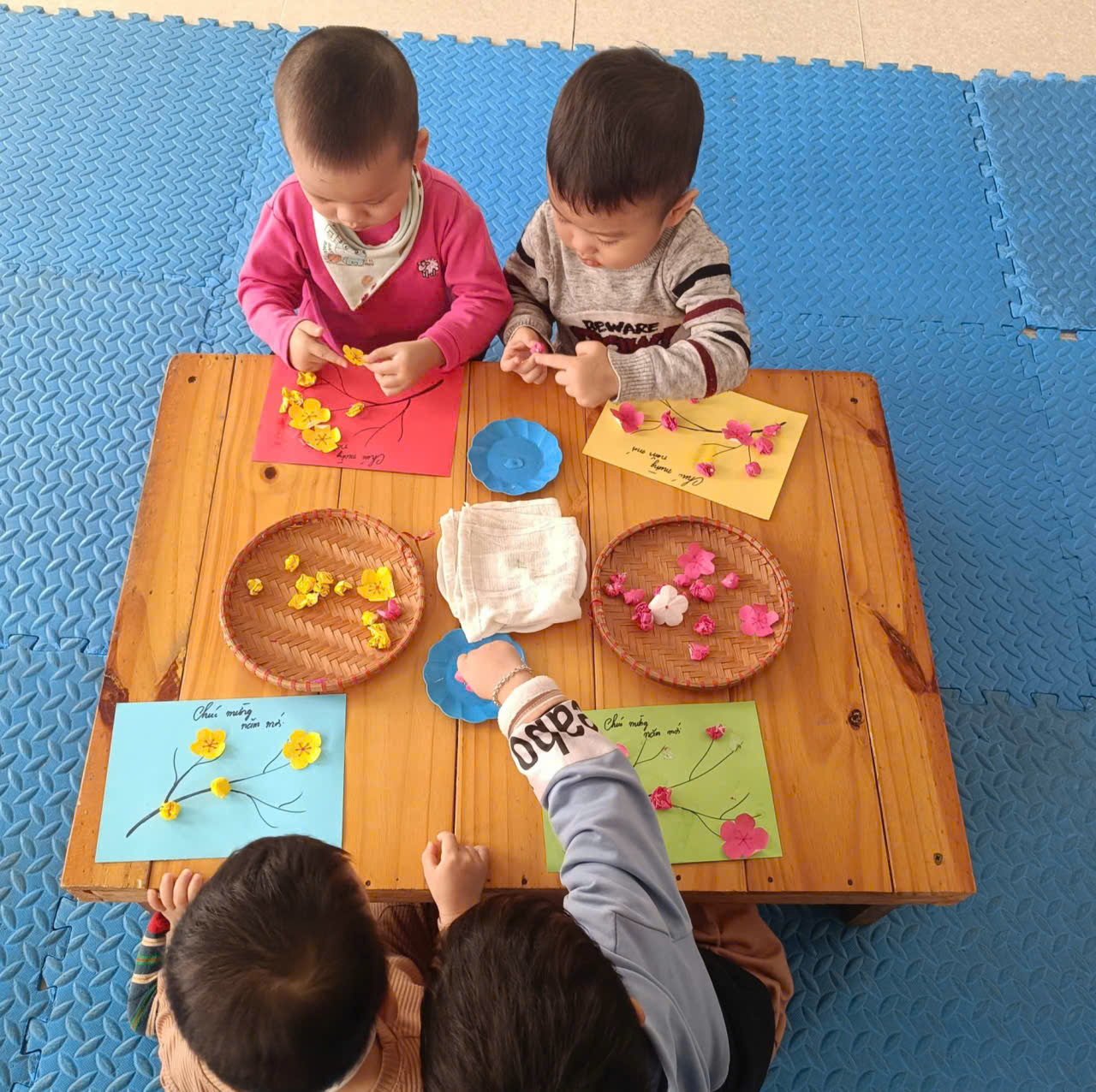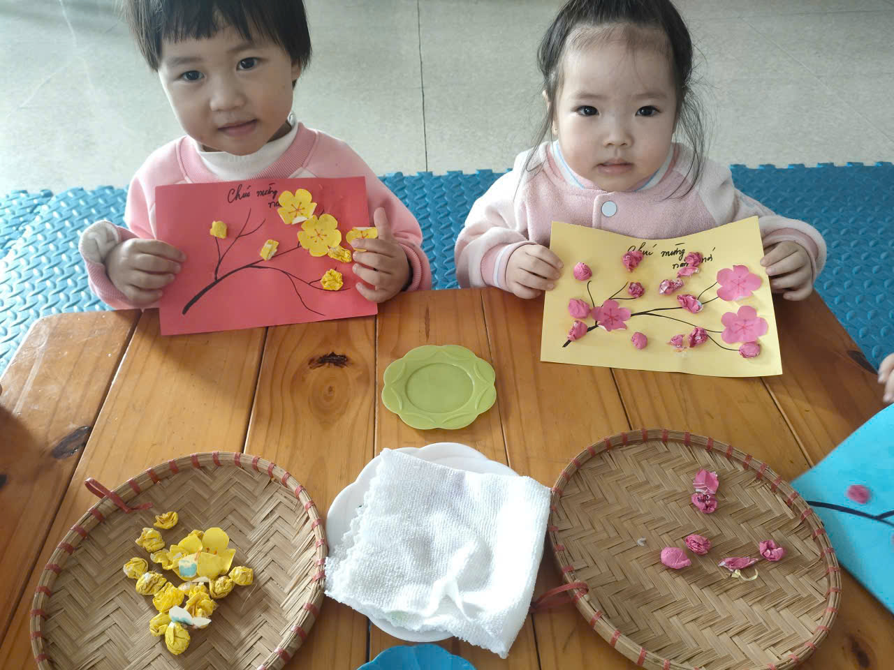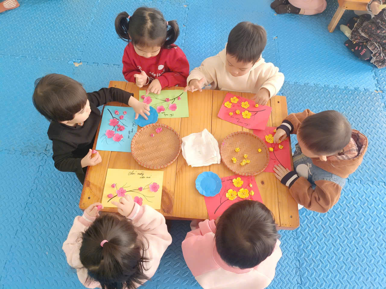 🔔 ⏰ Không khí mùa xuân đã ghé thăm lớp 2 tuổi qua hoạt động tạo hình “Dán trang trí hoa đào, hoa mai”. Những đôi bàn tay nhỏ xinh của các bé đã cùng nhau dán những bông hoa thật rực rỡ để chào đón Tết đến.