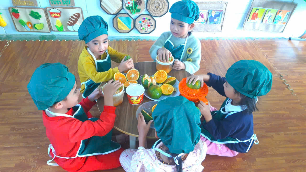👩🍳👨🍳 Trong thời gian qua, lớp 5TA5 – TMN Nghĩa Hải đã tổ chức cho trẻ tham gia hoạt động trải nghiệm chế biến món ăn phù hợp với lứa tuổi. Trẻ được trực tiếp làm cơm cuộn, cơm nắm, trứng chiên, bánh ngô, bánh khoai; pha nước chanh, vắt nước cam và làm sinh tố hoa quả. Dưới sự hướng dẫn của giáo viên, trẻ biết rửa tay sạch sẽ, lựa chọn nguyên liệu an toàn và thực hiện các thao tác đơn giản với sự hào hứng, cẩn thận.