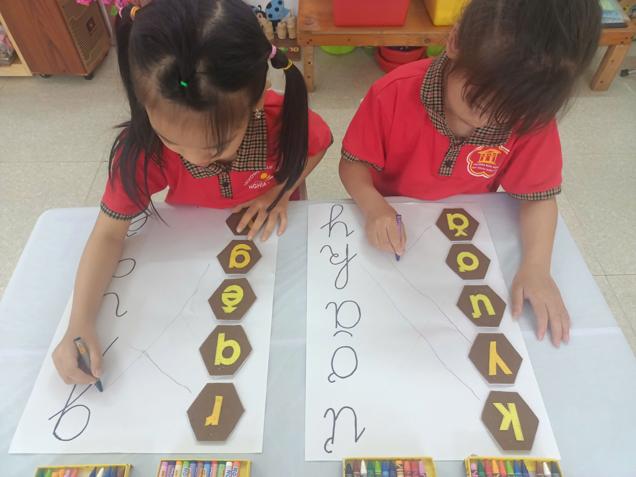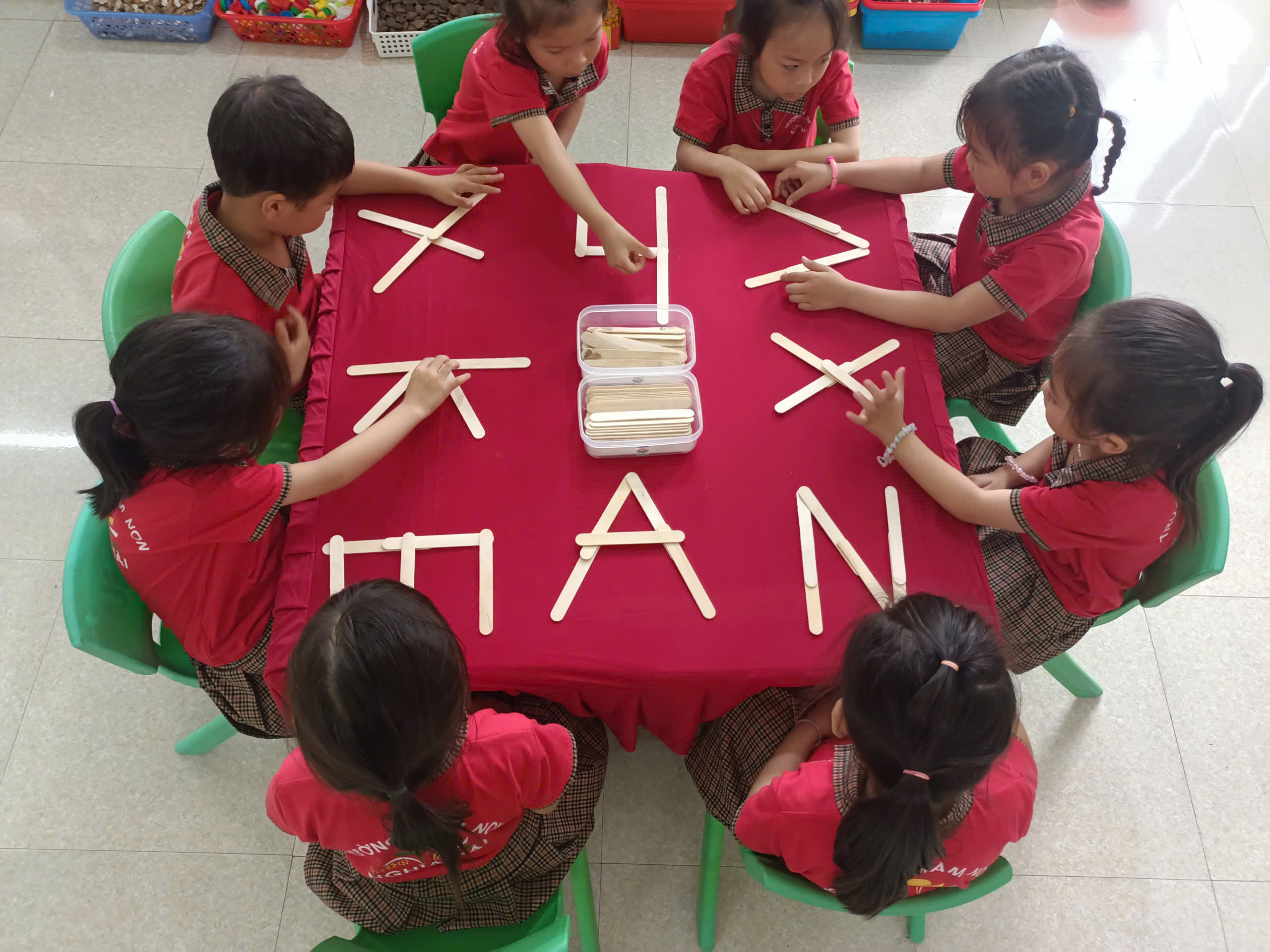 📖Thông qua các trò chơi như: tìm chữ cái, ghép chữ, đoán chữ qua hình ảnh, hay xếp chữ bằng que, hạt…, trẻ không chỉ nhận biết và ghi nhớ mặt chữ mà còn phát triển tư duy, khả năng quan sát và sự nhanh nhẹn. Trẻ học mà chơi, chơi mà học, từ đó tạo hứng thú và niềm yêu thích với việc học chữ.