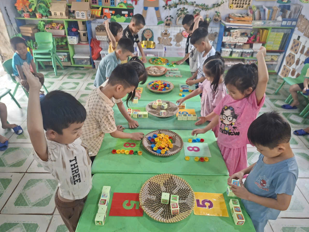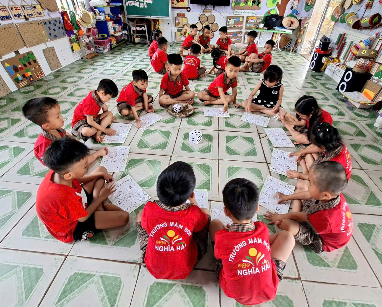 Dưới đây là một số hình ảnh minh chứng cho hoạt động tổ chức trò chơi ôn tập toán của trẻ tại lớp 5 tuổi A5-trường mầm non Nghĩa Hải: