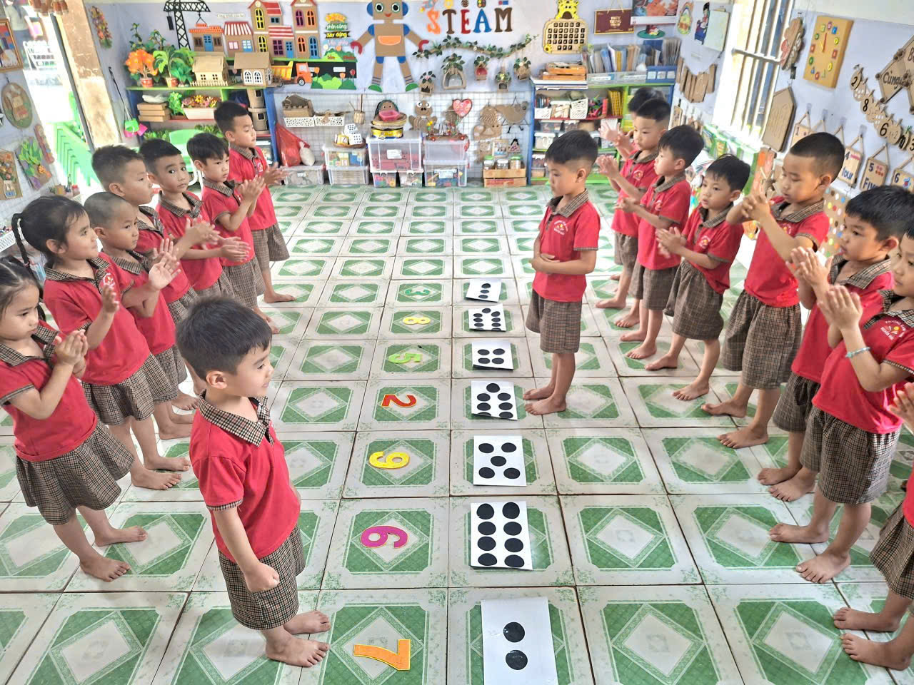Việc ôn tập toán thông qua trò chơi là hình thức học tập nhẹ nhàng, hiệu quả, góp phần giúp trẻ củng cố kiến thức, phát triển toàn diện và vững vàng hơn trước khi bước vào lớp 1. Nhà trường mong tiếp tục nhận được sự phối hợp của phụ huynh để đồng hành cùng trẻ trong giai đoạn quan trọng này.
