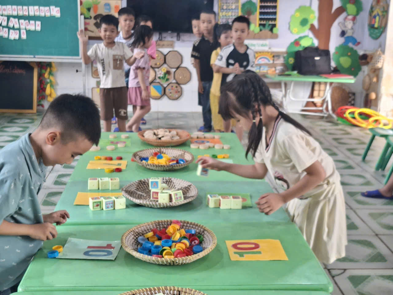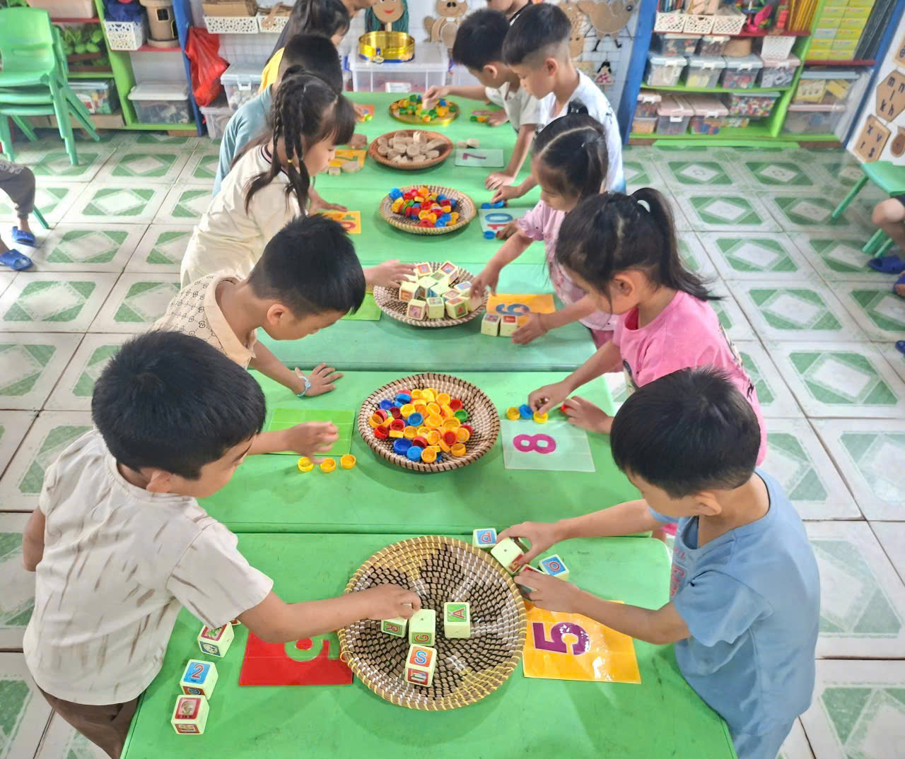 Tháng 4 là thời điểm thích hợp ho trẻ mẫu giáo 5 tuổi được ôn tập, củng cố các kiến thức đã học nhằm chuẩn bị tâm thế sẵn sàng bước vào lớp 1. Để việc ôn luyện đạt hiệu quả, giáo viên đã linh hoạt tổ chức nhiều trò chơi toán học hấp dẫn, giúp trẻ học trong niềm vui và sự hứng thú